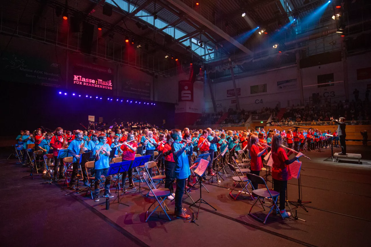 Mit wunderbaren Konzerten in der MBS Arena in Potsdam sind die beiden Bläserklassentreffen im November 2022 zu Ende gegangen. Vor nahezu ausverkauften Reihen präsentierten die Schülerinnen und Schüler, was sie in eineinhalb Jahren Bläserklassenunterricht gelernt und auf Schloss Boitzenburg für die große Bühne vorbereitet haben.