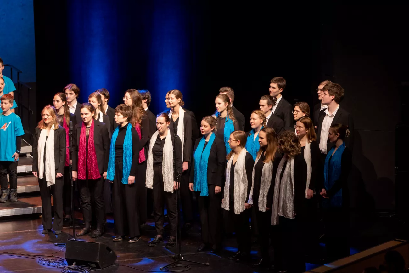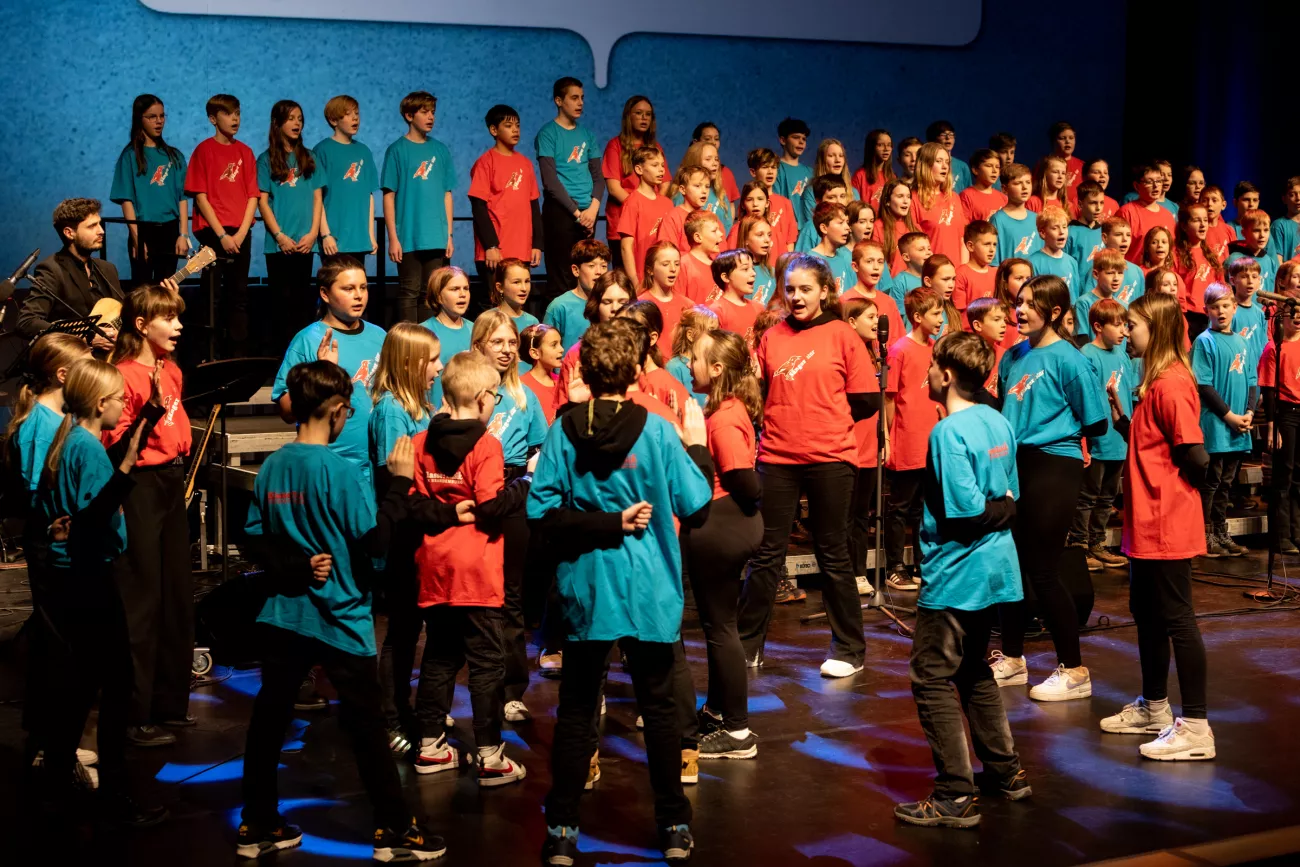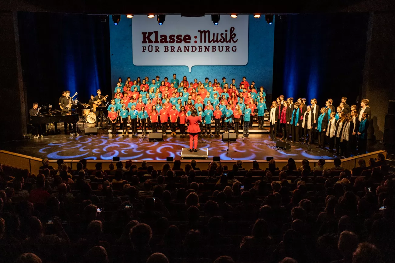 Das Konzert in den Uckermärkischen Bühnen Schwedt bestritten die Singklasse aber nicht allein: Der Landesjugendchor Brandenburg sang einige Titel zusammen mit den Kindern und brachte auch eigene Stücke aus dem Repertoire mit. Rhythmisch sorgte die Band, bestehend aus dem Musikschullehrer Martin Hunger und Mitgliedern des LandesJugendJazzOrchersters, für den richtigen Groove.